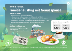 Das ParkCafé hat bereits zu Ostern geöffnet und das Genussticket „Bahn & Plinse“ kombiniert Geschmack und Kultur zum günstigen Vorteilspreis.